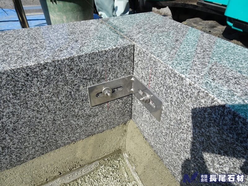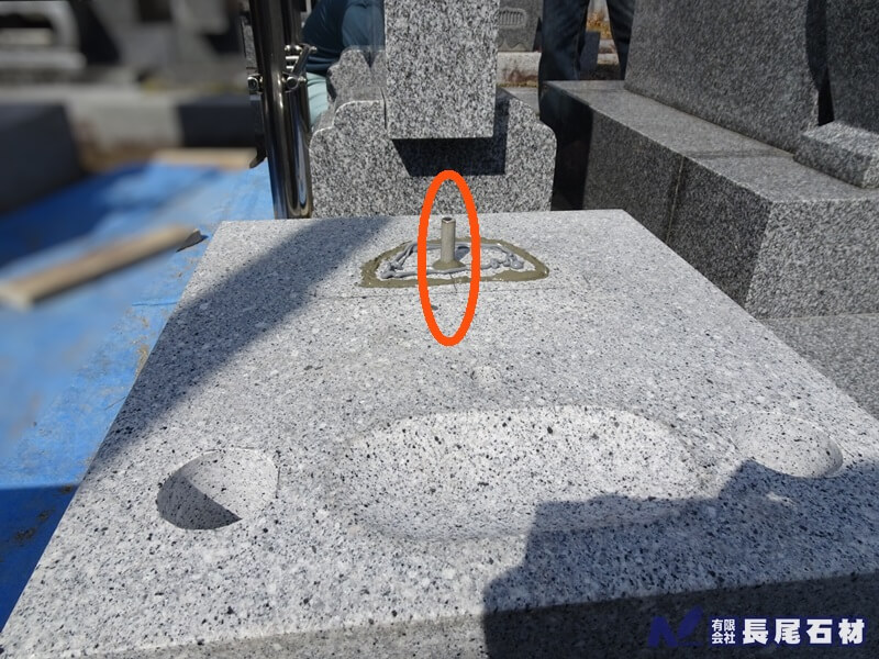 上台~布団(スリン)~棹石には、ステンレス製耐震棒を入れて、地震対策を行います。